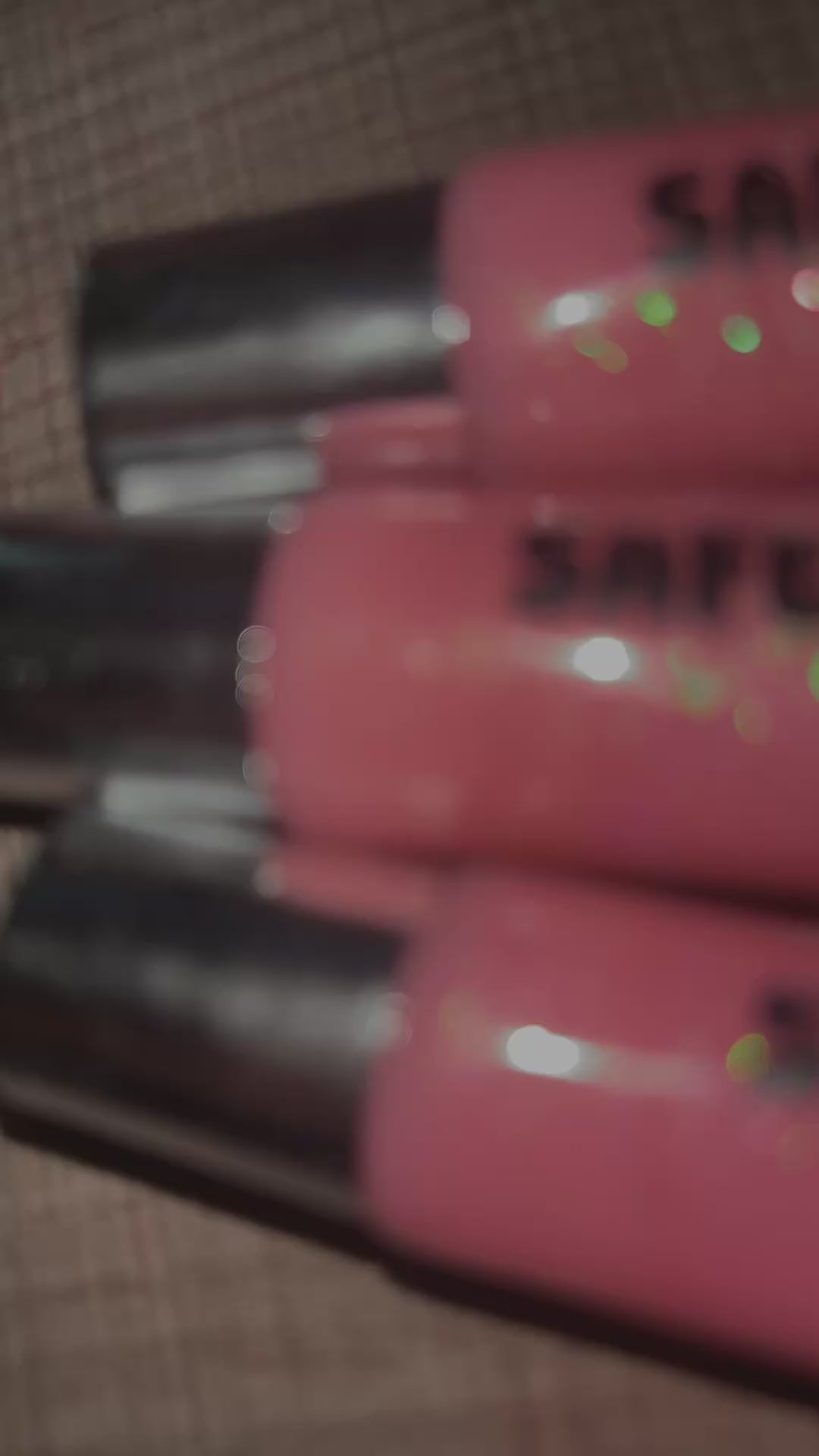 A cotton candy flavored pink sparkling lip gloss